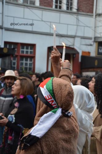 El jueves eramos pocos frente a la embajada de Palestina, pero cada vez llega más gente a expresar su solidaridad con el pueblo palestino. Este 17 de octubre llegaron jóvenes, sindicalistas, musulmanes, ortodoxos, migrantes, periodistas, comunistas, gente de Colombia Humana, organizaciones de mujeres, activistas de la «vieja guardia», profesores, y todo tipo de personas unidas al grito de «no al genocidio». Lo que màs se sintió, el asesinato de cientos de palestinos en un hospital de Gaza, bombardeado por Israel. Aquí una muestra de ese velatón.